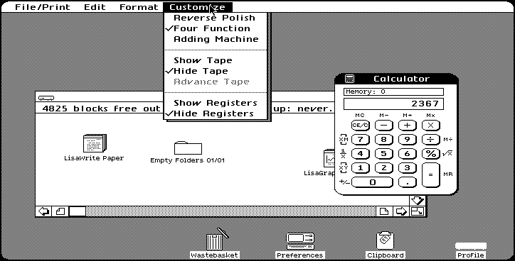La Macintosh permitía realizar diagramas, gráficos, integrar imágenes y texto, producir y editar publicaciones, simuladores de juego, procesar música, incluso aumentaron su memoria hasta 512 kb.